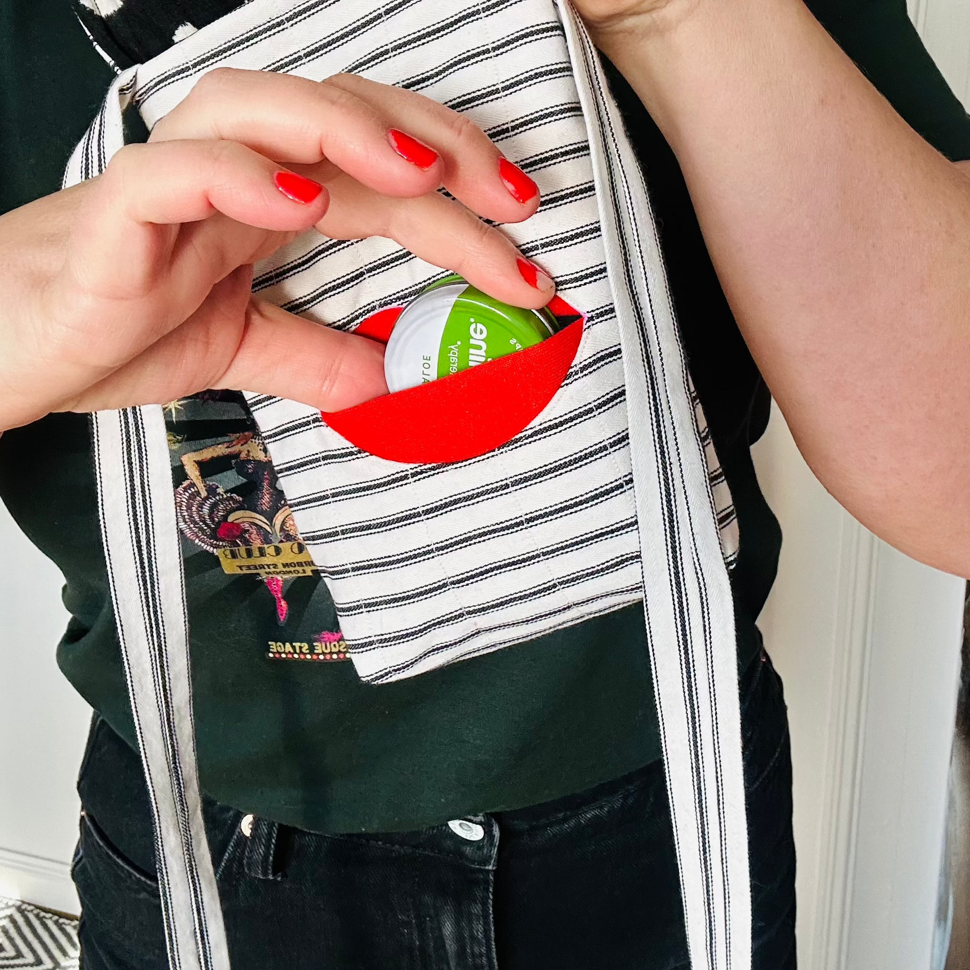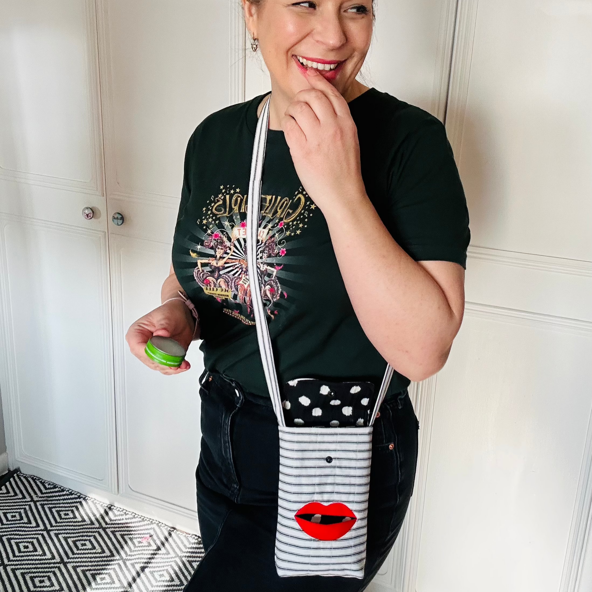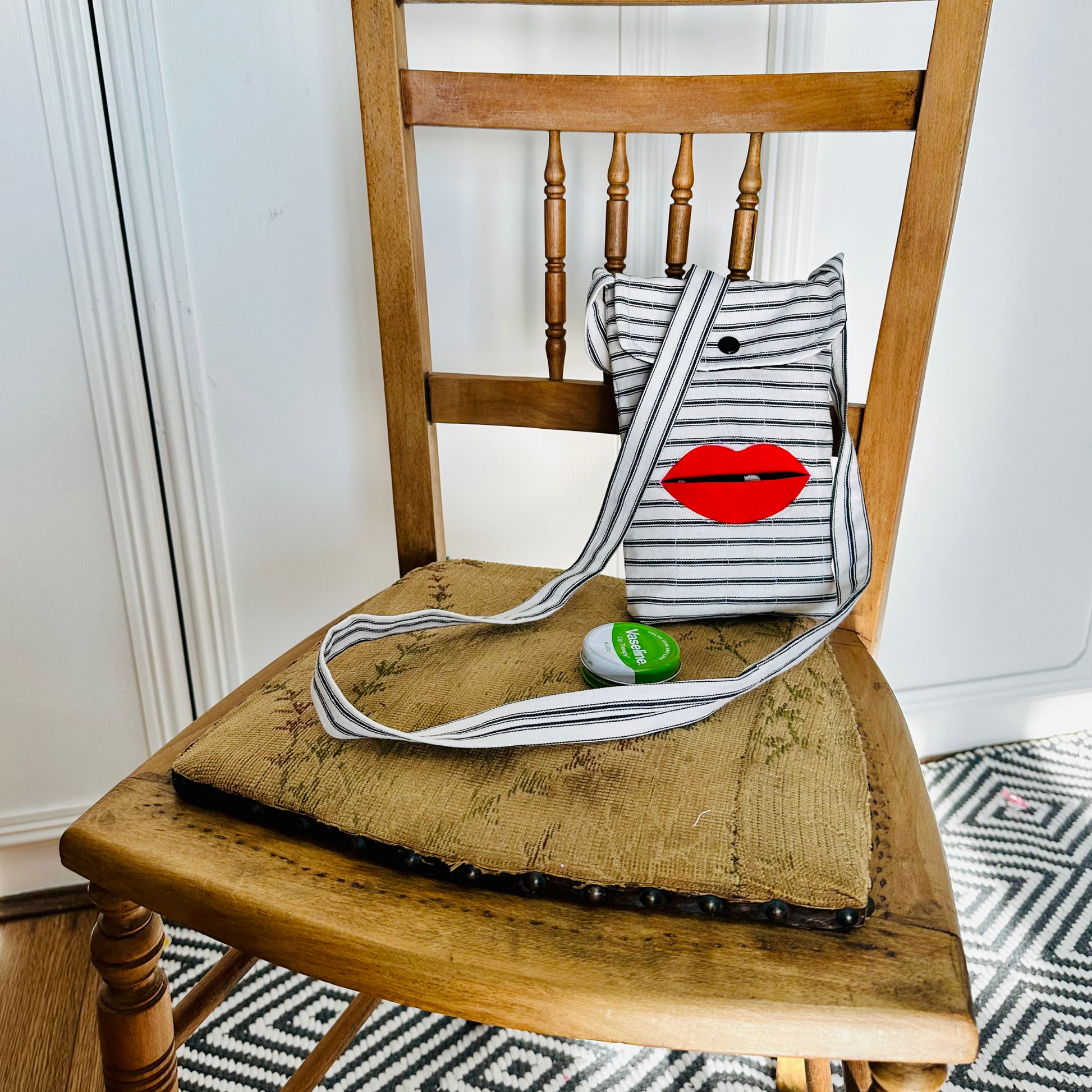 Crafted from carefully selected up-cycled materials sourced from deadstock and vintage pieces, this one-of-a-kind design is not only unique but also sustainable. The charming lip pocket is just the right size for your lip balm, lipstick, or even a sneaky mint before you pucker up!