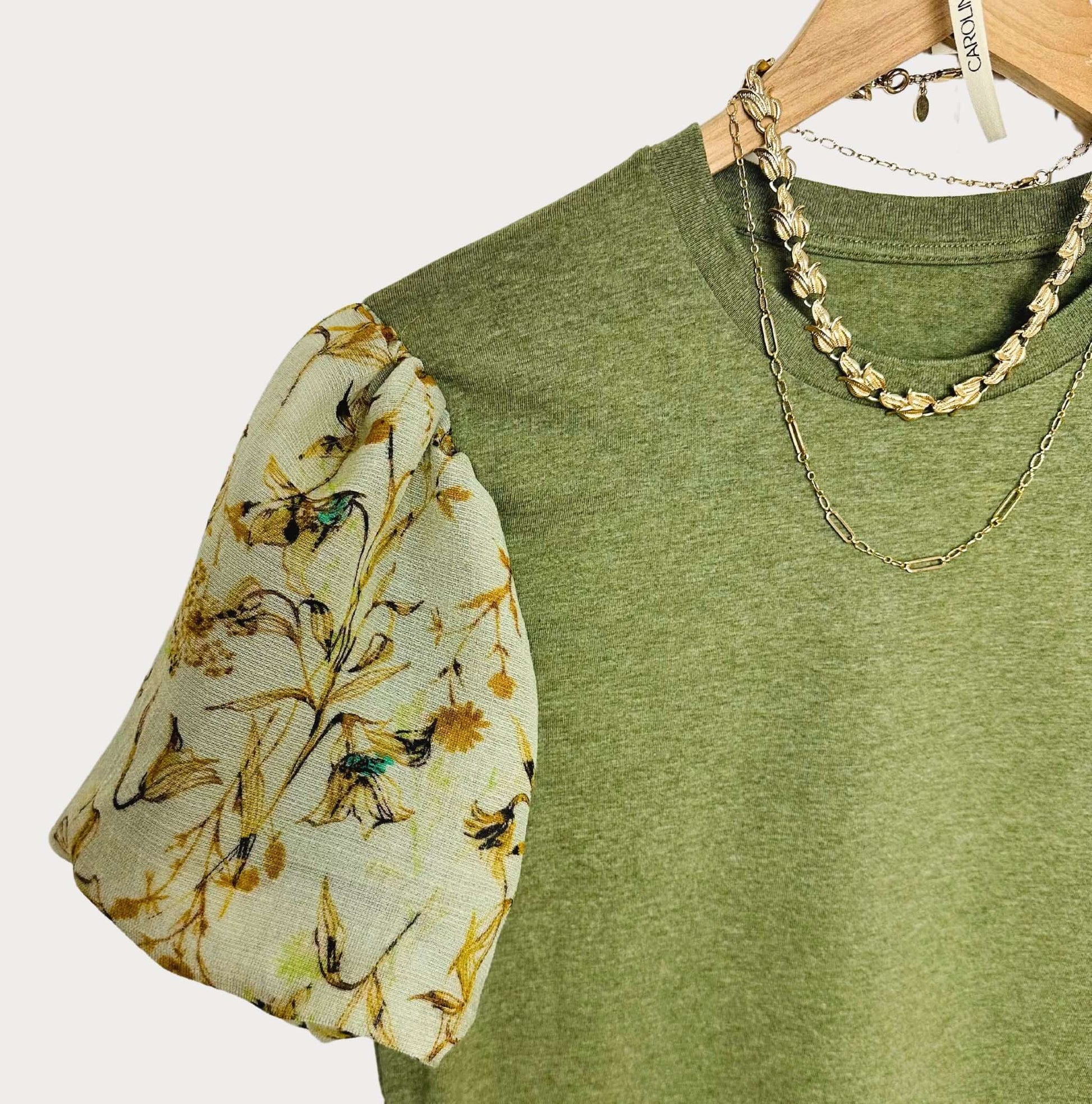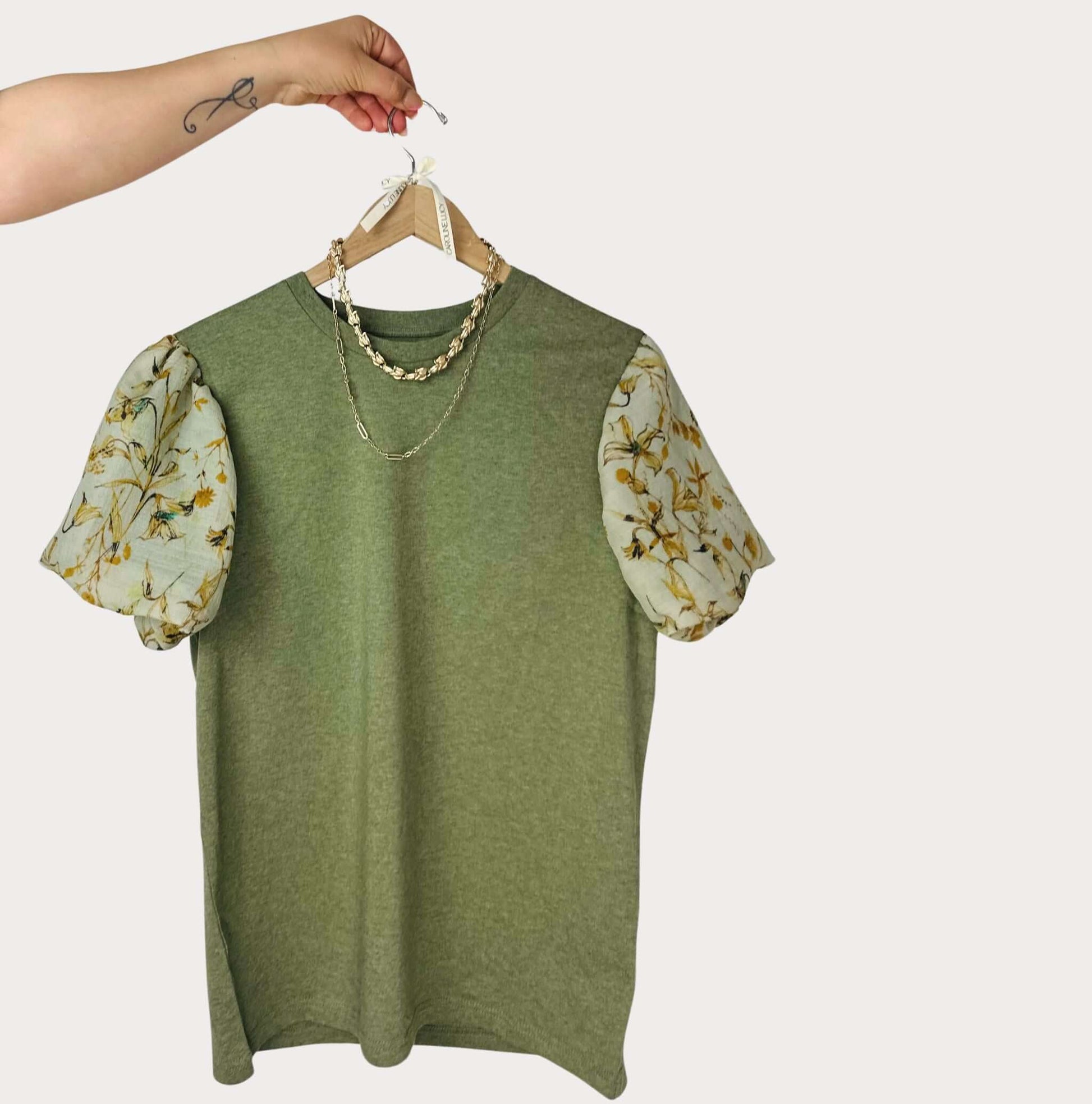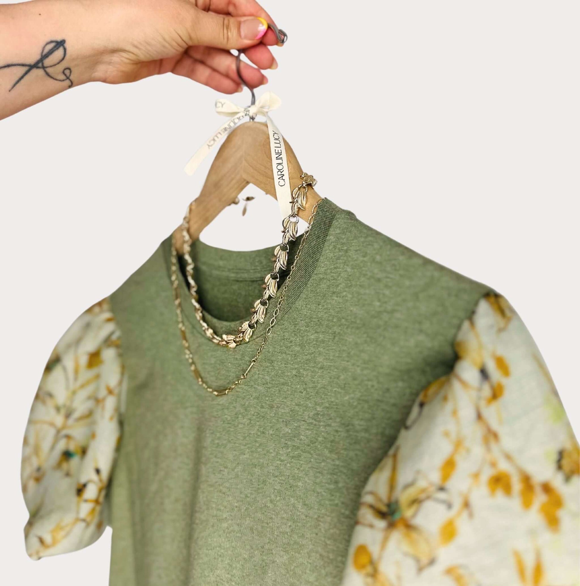 Made to order- The DREAMER Pouf Sleeve tee in khaki - our Basics But Better tee, designed to elevate your everyday wardrobe effortlessly. Experience unmatched comfort and style with this easy-to-wear, super-soft, and breathable tee, crafted from premium certified organic cotton. The sleeves are constructed from a silk and wool mix material sewn with a deep gather for extra pouf. Delivered in 1-2 weeks.